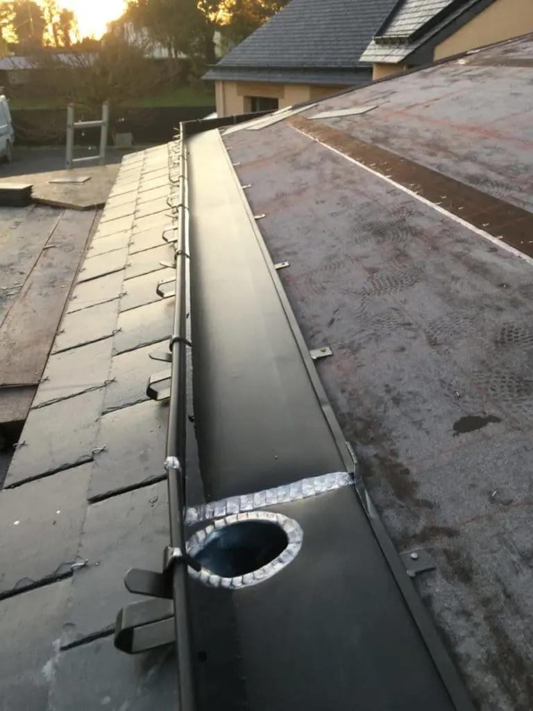 Pose de chéneaux, gouttières zinc et habillages : une zinguerie précise et durable pour protéger efficacement votre toiture.